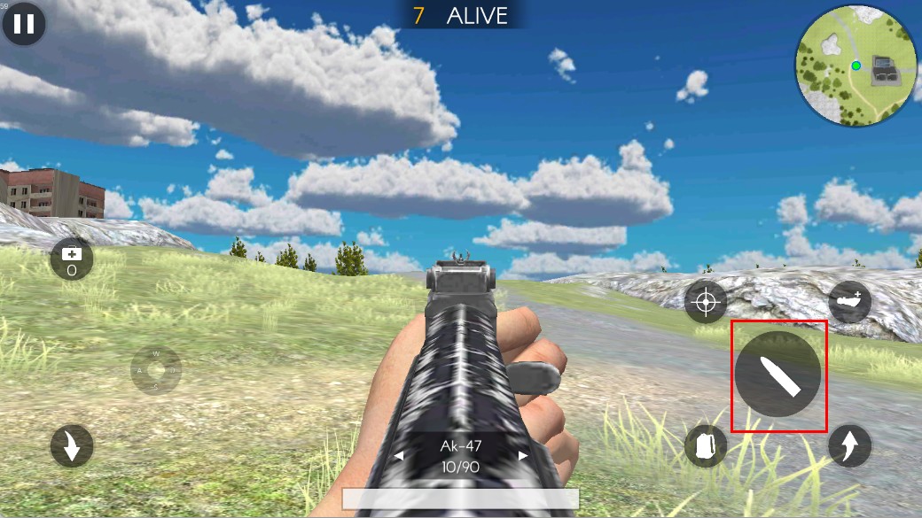 3、遇到敵人時,使用拾取到的AK47步槍,點擊射擊按鈕,向敵人發(fā)起攻擊,力爭淘汰對手,存活下去。