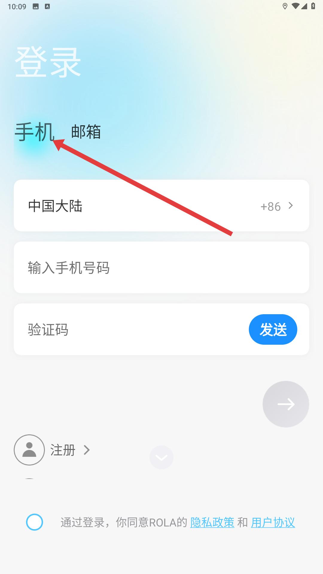 1、進(jìn)入APP后,登錄界面選擇手機(jī)登錄方式,輸入手機(jī)號(hào)碼并獲取驗(yàn)證碼,完成賬號(hào)登錄操作。