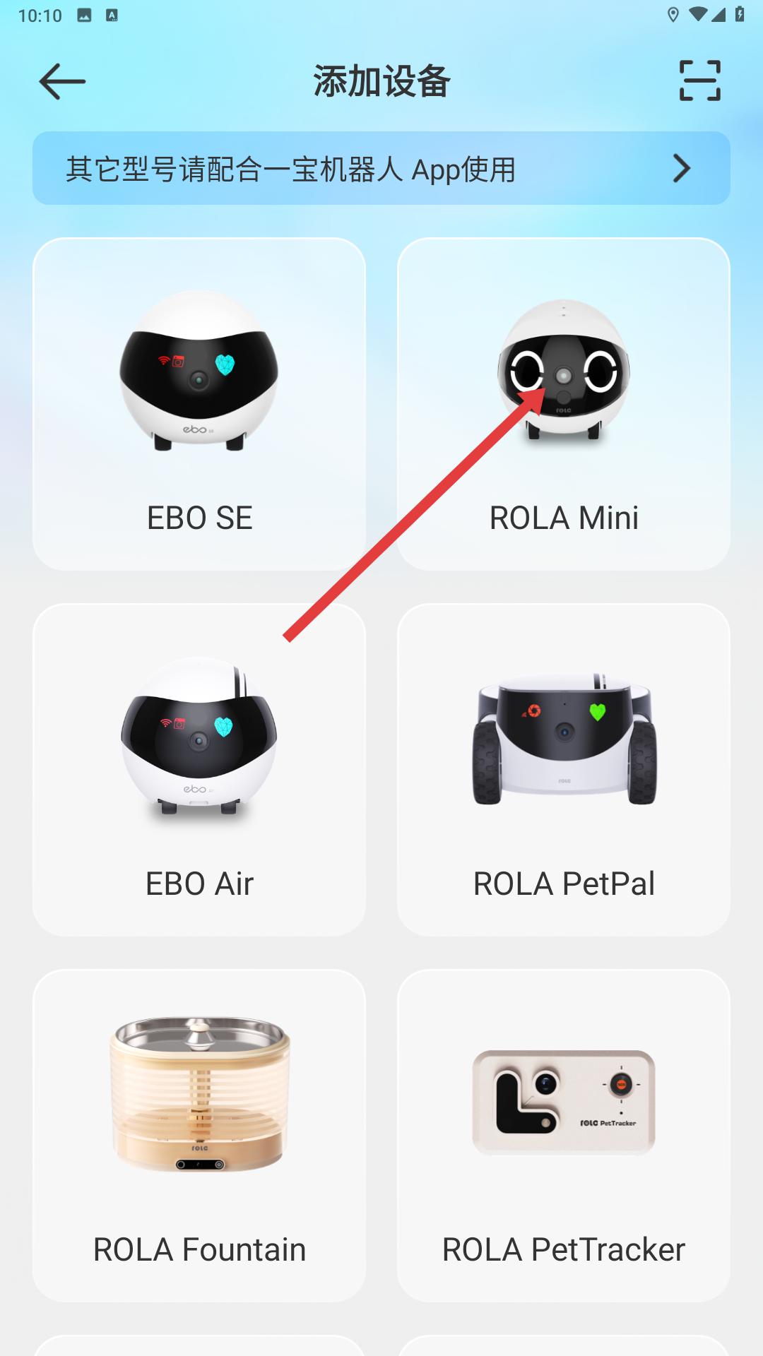 3、來到添加設(shè)備界面,選擇ROLAMini設(shè)備,可進(jìn)入該設(shè)備的連接流程。