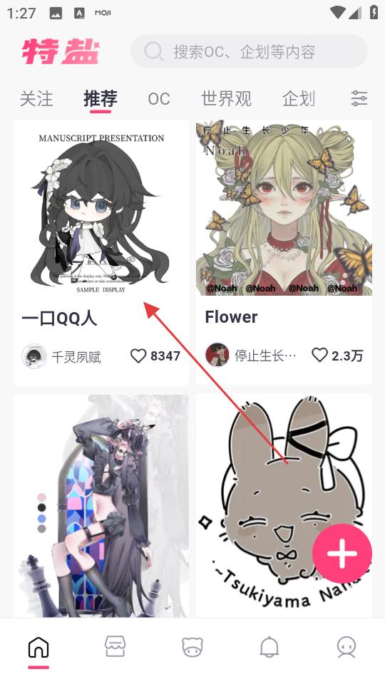 1、打開特鹽閱讀,進(jìn)入推薦頁面,瀏覽各類作品展示,找到名為一口QQ人的作品,其畫面風(fēng)格獨(dú)特,點(diǎn)擊作品區(qū)域,進(jìn)入該作品詳情界面。
