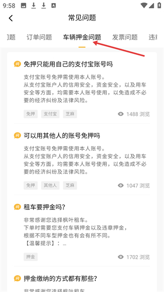 4、車輛押金板塊解答免押賬號(hào)使用、租車押金等疑問(wèn),需本人支付寶賬號(hào),下單需付車輛及違章押金,避免經(jīng)濟(jì)糾紛與法律風(fēng)險(xiǎn)。