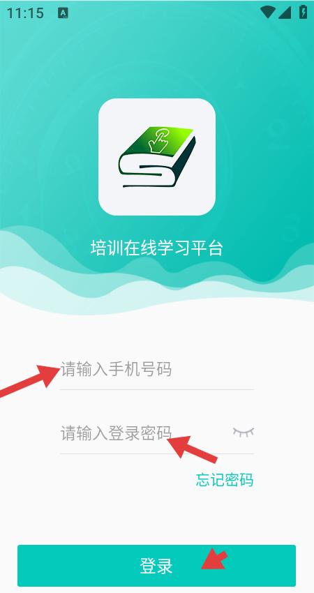 2、登錄界面展示培訓在線學習平臺標識,設手機號和密碼輸入框,下方有忘記密碼入口,點擊登錄按鈕完成身份驗證,助力用戶進入學習系統(tǒng)。