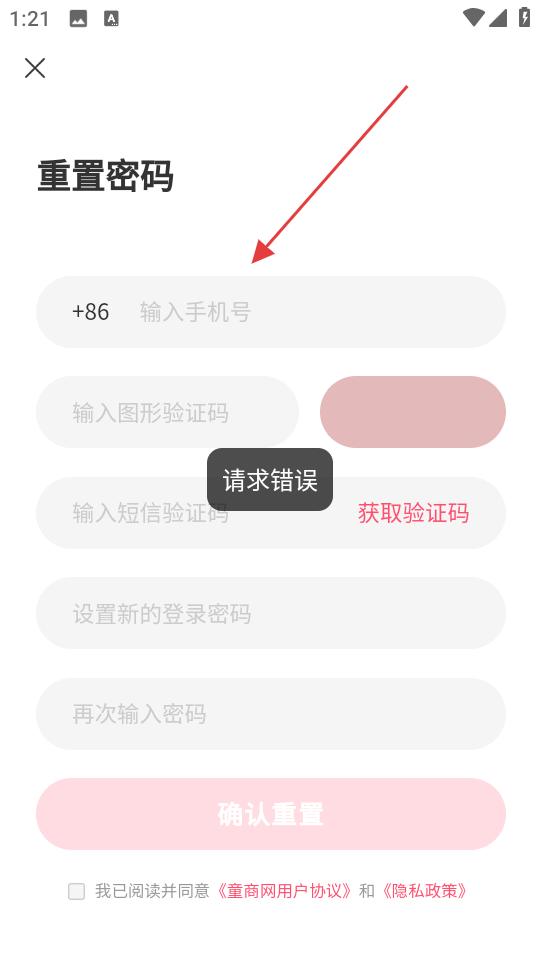 3、重置密碼頁(yè)面,需輸入手機(jī)號(hào)、圖形驗(yàn)證碼、短信驗(yàn)證碼,設(shè)置并確認(rèn)新密碼,點(diǎn)擊確認(rèn)重置。