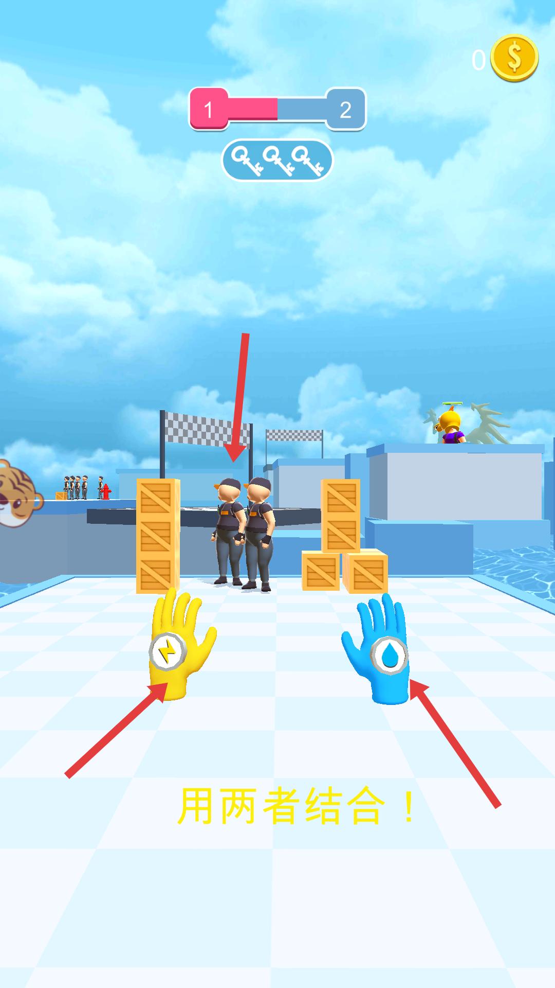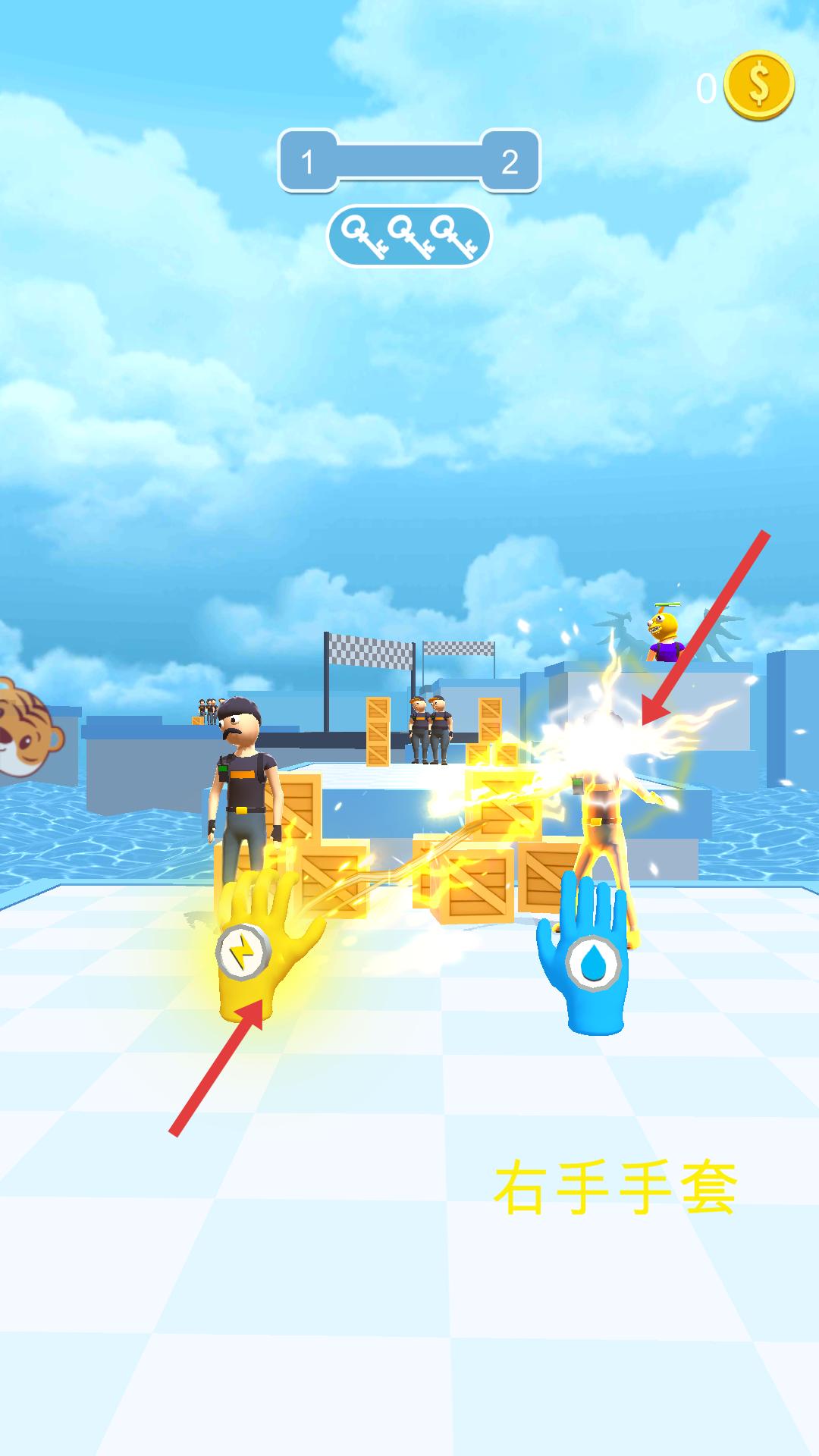3、當(dāng)遇到特定情況時,結(jié)合使用閃電手套和藍色水滴手套的技能,發(fā)揮兩者組合的效果,更好地完成關(guān)卡內(nèi)的任務(wù)。