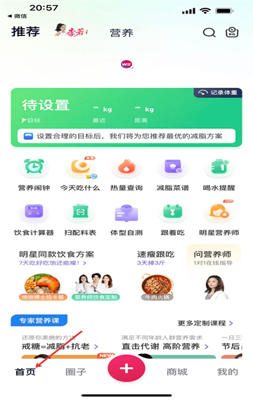1、首頁板塊含營養(yǎng)鬧鐘、熱量查詢等功能,還有明星飲食方案和專家營養(yǎng)課,助力用戶科學(xué)減脂,功能豐富實用。