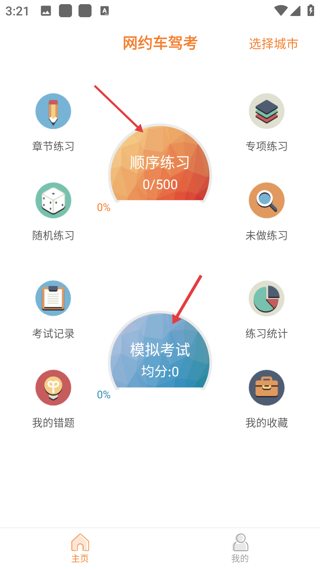 3、網約車駕考軟件的主頁提供多種練習模式,如順序練習、模擬考試等,模擬考試可查看均分,方便用戶針對性備考。