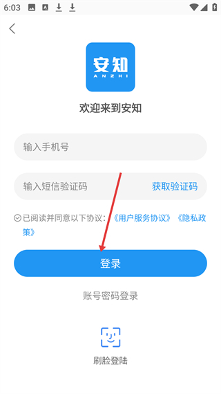 1、登錄界面可通過輸入手機號、獲取驗證碼登錄,也能選擇賬號密碼登錄或刷臉登錄,需同意用戶服務協(xié)議和隱私政策。