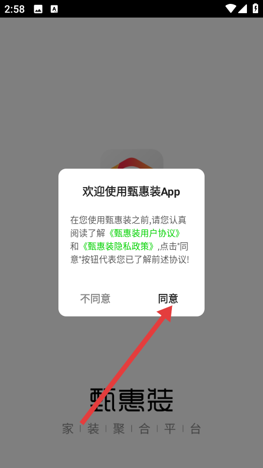 1、首次打開APP會彈出用戶協(xié)議及隱私政策界面,需仔細閱讀后點擊同意才能繼續(xù)使用APP,這一步是為了確保用戶了解并同意平臺使用個人信息的規(guī)則。