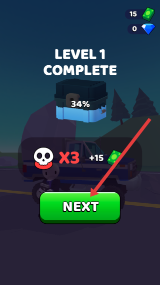 3、成功完成當(dāng)前關(guān)卡如LEVEL1COMPLETE后,點擊綠色NEXT按鈕,進(jìn)入下一個關(guān)卡繼續(xù)挑戰(zhàn)。
