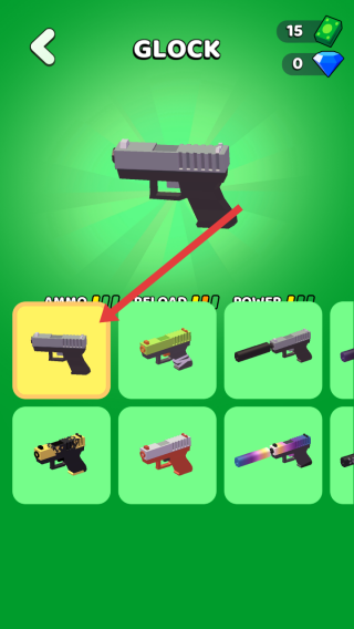 4、此外游戲有槍械選擇界面,可解鎖并選擇不同的槍械,像GLOCK等,用新槍械進(jìn)行射擊闖關(guān)。