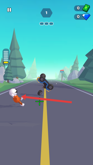 2、射擊后目標(biāo)車輛被擊中,會出現(xiàn)車輛翻轉(zhuǎn)、人物被擊中掉落等效果,持續(xù)射擊可消滅目標(biāo)。