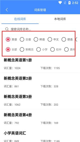 支持從小學(xué)到工作期間的在線詞庫下載;