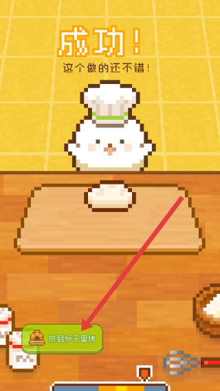 4、面團制作成功后,會顯示成功,這個做的還不錯,接著點擊放到爐子里烤按鈕,將面團送去烘烤。