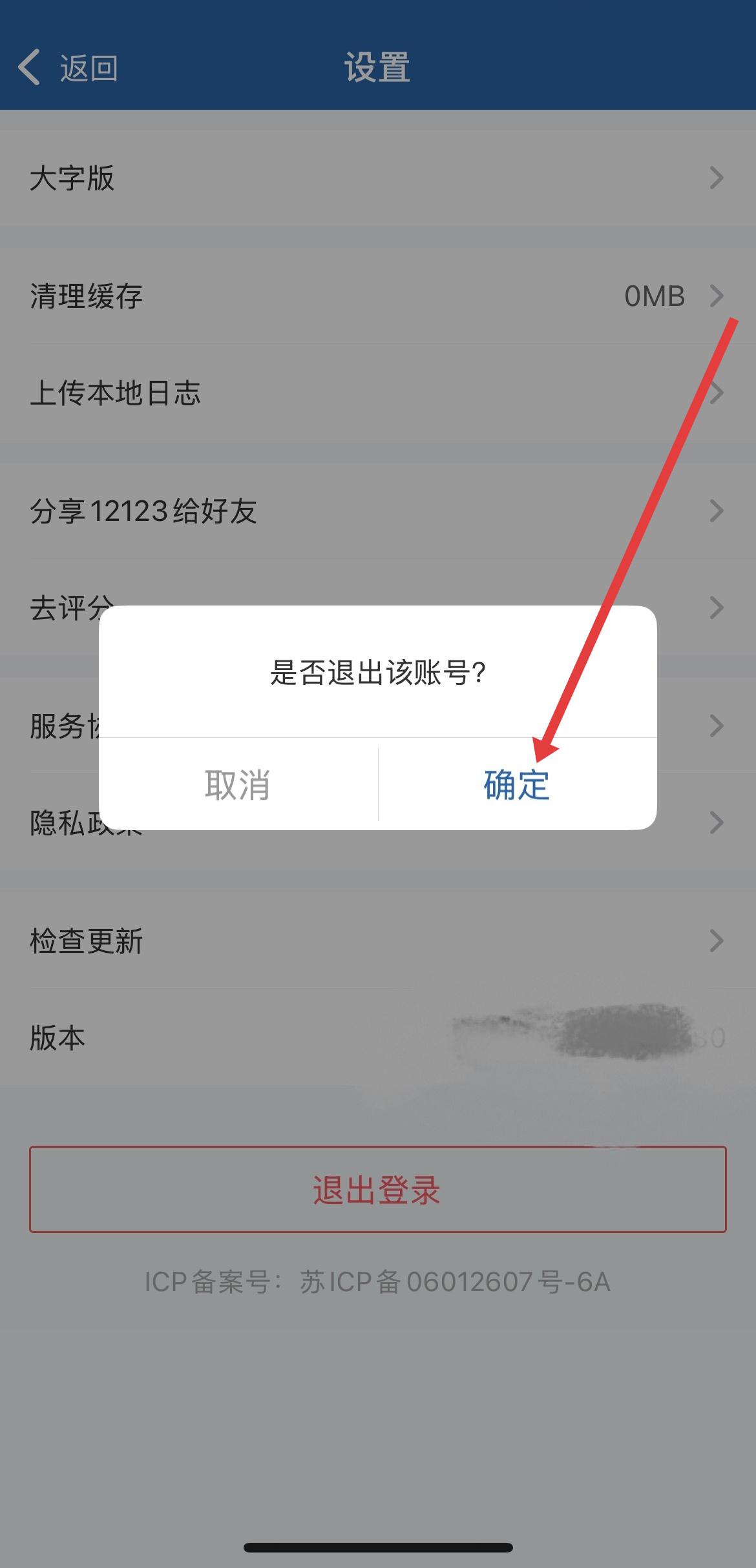4、彈出的提示框詢問是否退出該賬號,點(diǎn)擊確定,即可完成交管12123的退出登錄。