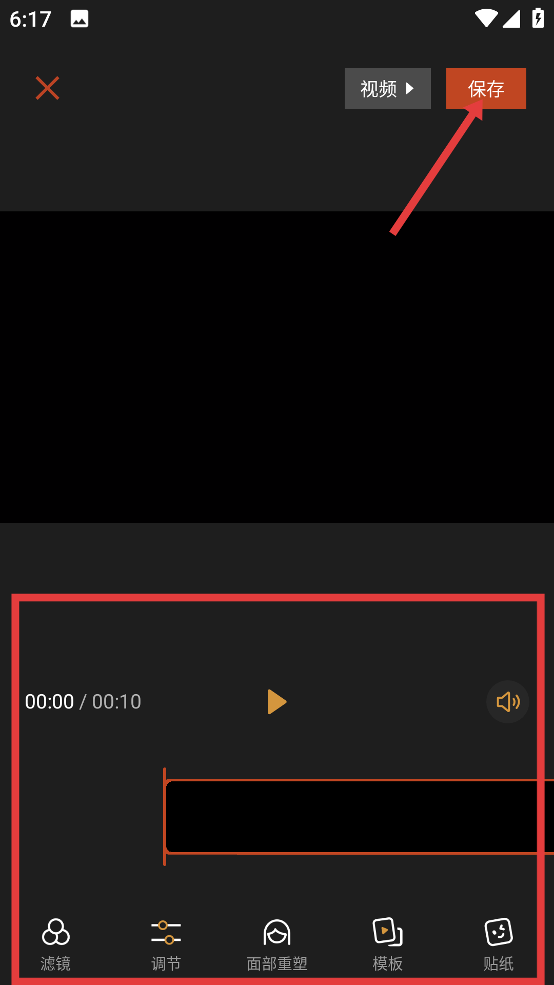 3、選中視頻后進入編輯界面,下方有濾鏡、調(diào)節(jié)、面部重塑等功能,可根據(jù)需求給視頻加濾鏡營造氛圍,調(diào)節(jié)亮度、對比度等參數(shù)優(yōu)化畫面讓視頻更出彩。