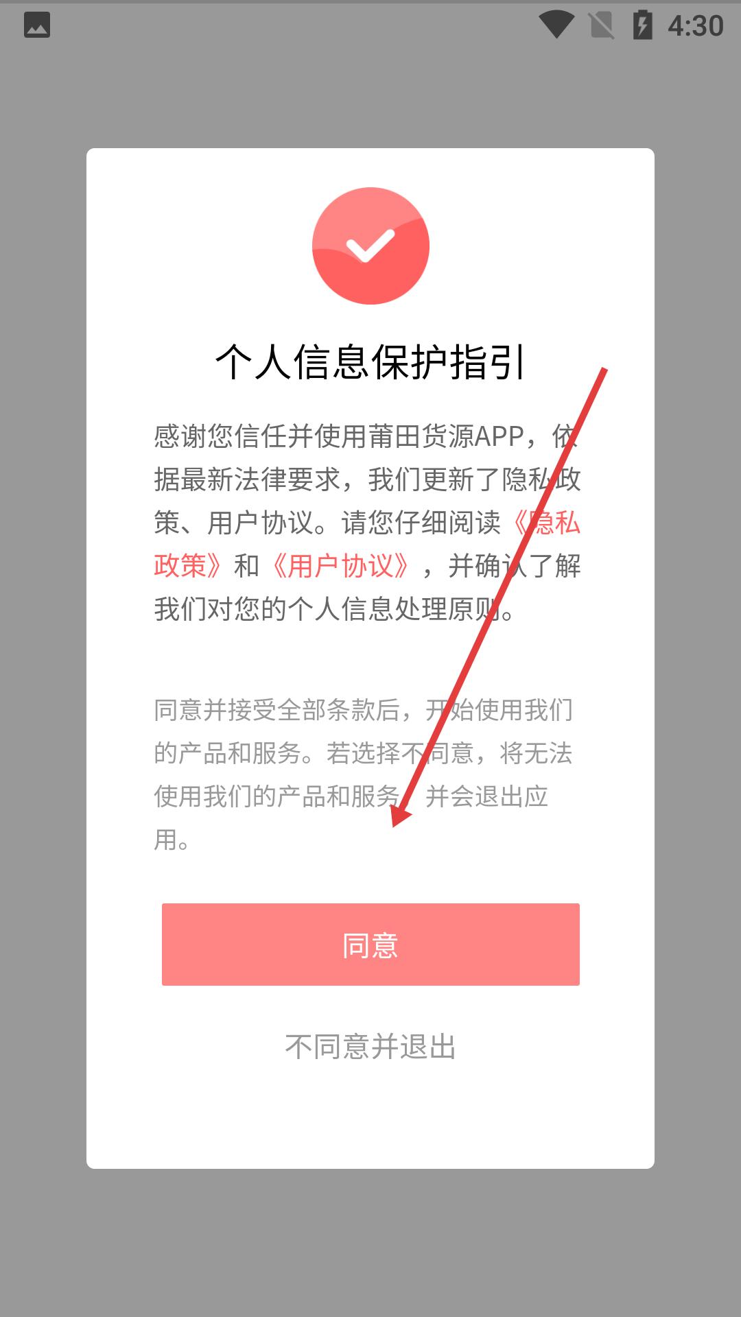 1、下載安裝完成后進(jìn)入,需在用戶協(xié)議和隱私政策界面點擊同意,接受相關(guān)條款后才能進(jìn)入應(yīng)用。