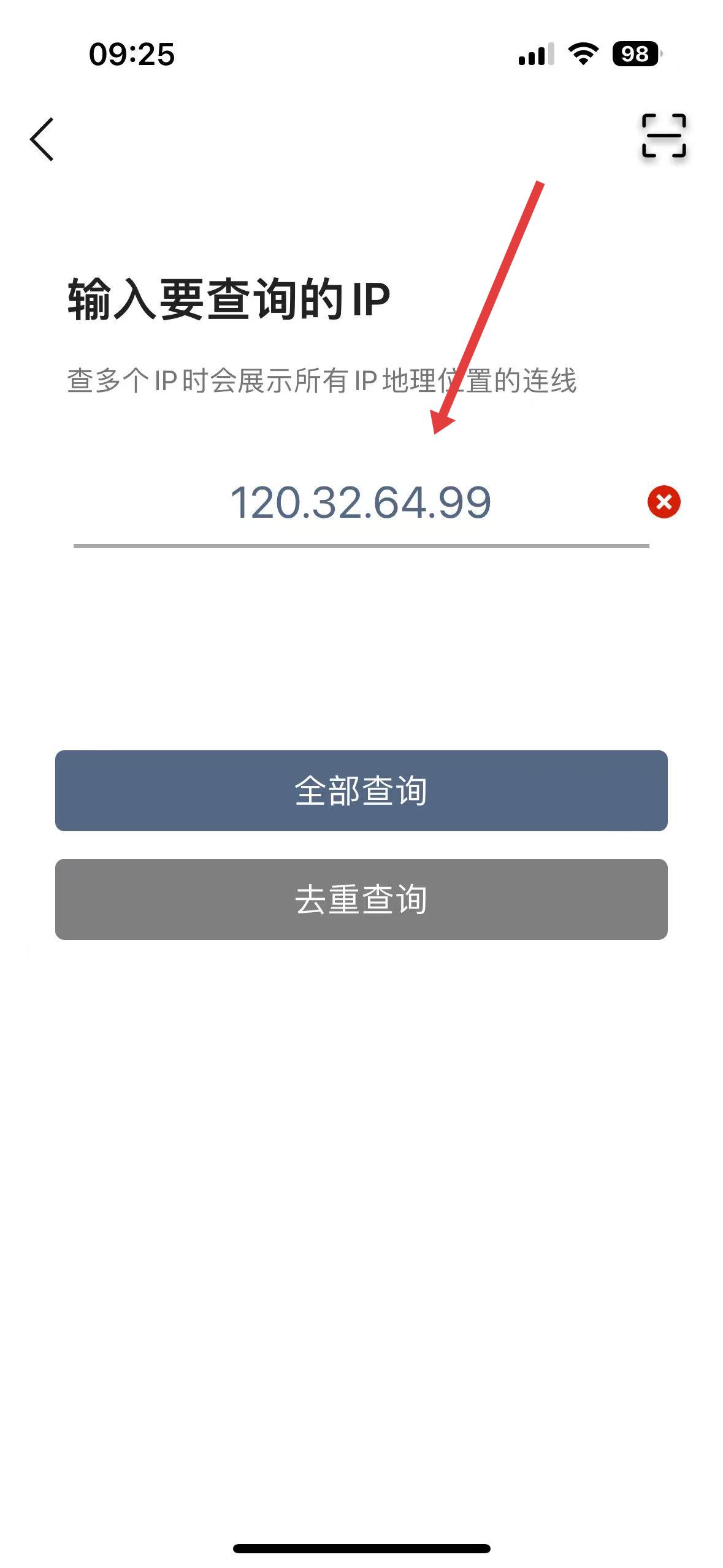 3、查詢輸入頁(yè)面,用戶輸入要查詢的IP地址后,可選擇全部查詢或去重查詢,方便用戶獲取IP的相關(guān)信息。