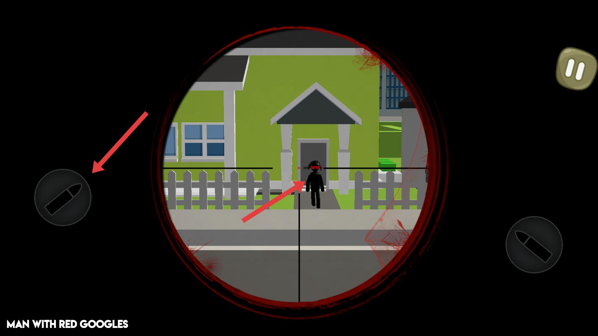 2、進(jìn)入游戲后,通過狙擊鏡瞄準(zhǔn)目標(biāo),看到戴紅色護(hù)目鏡的人物,點(diǎn)擊左側(cè)子彈按鈕,可發(fā)射子彈進(jìn)行射擊。