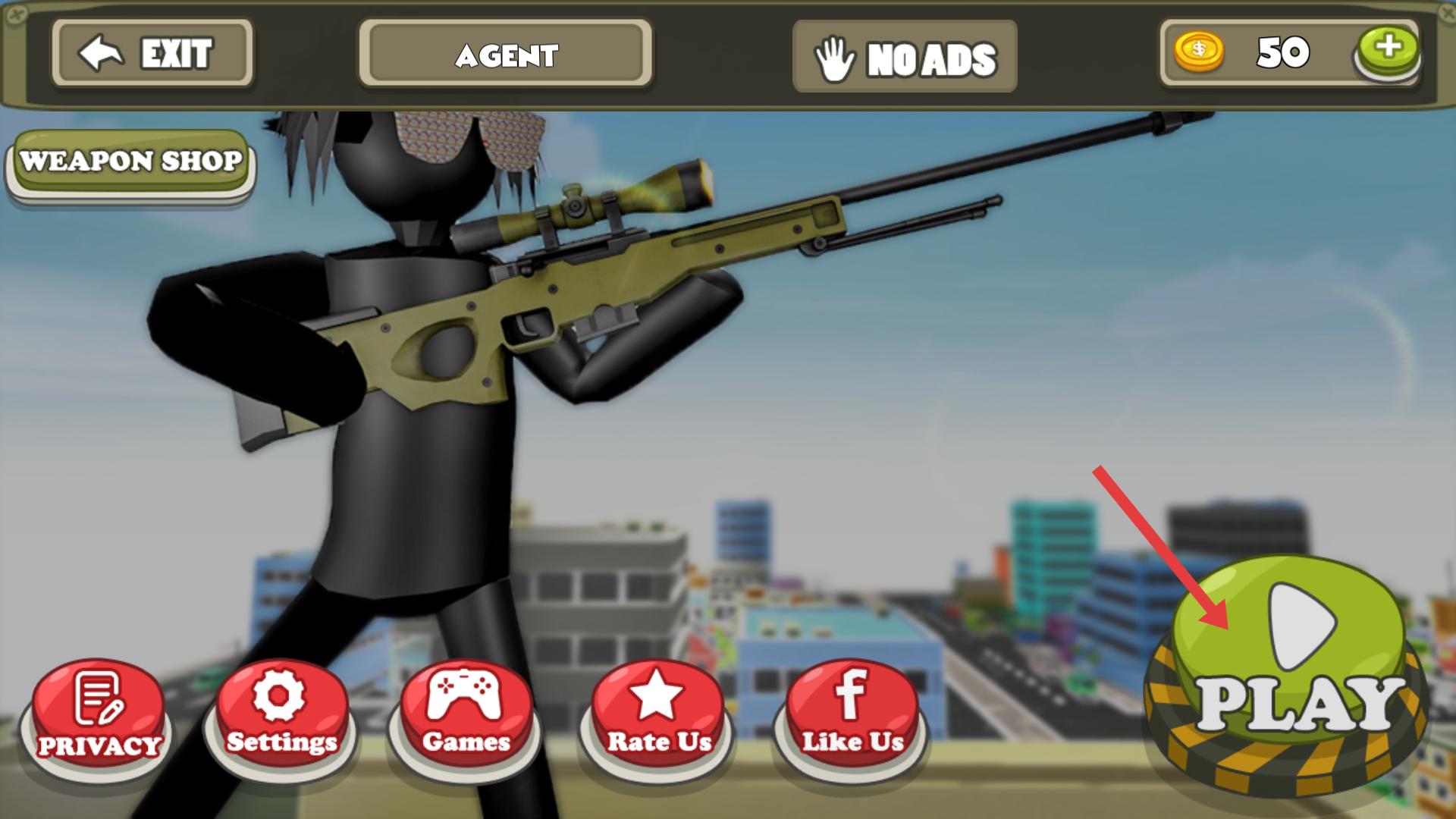 1、游戲初始界面,點(diǎn)擊【PLAY】按鈕,即可進(jìn)入狙擊任務(wù)的游戲場景,開啟冒險(xiǎn)。