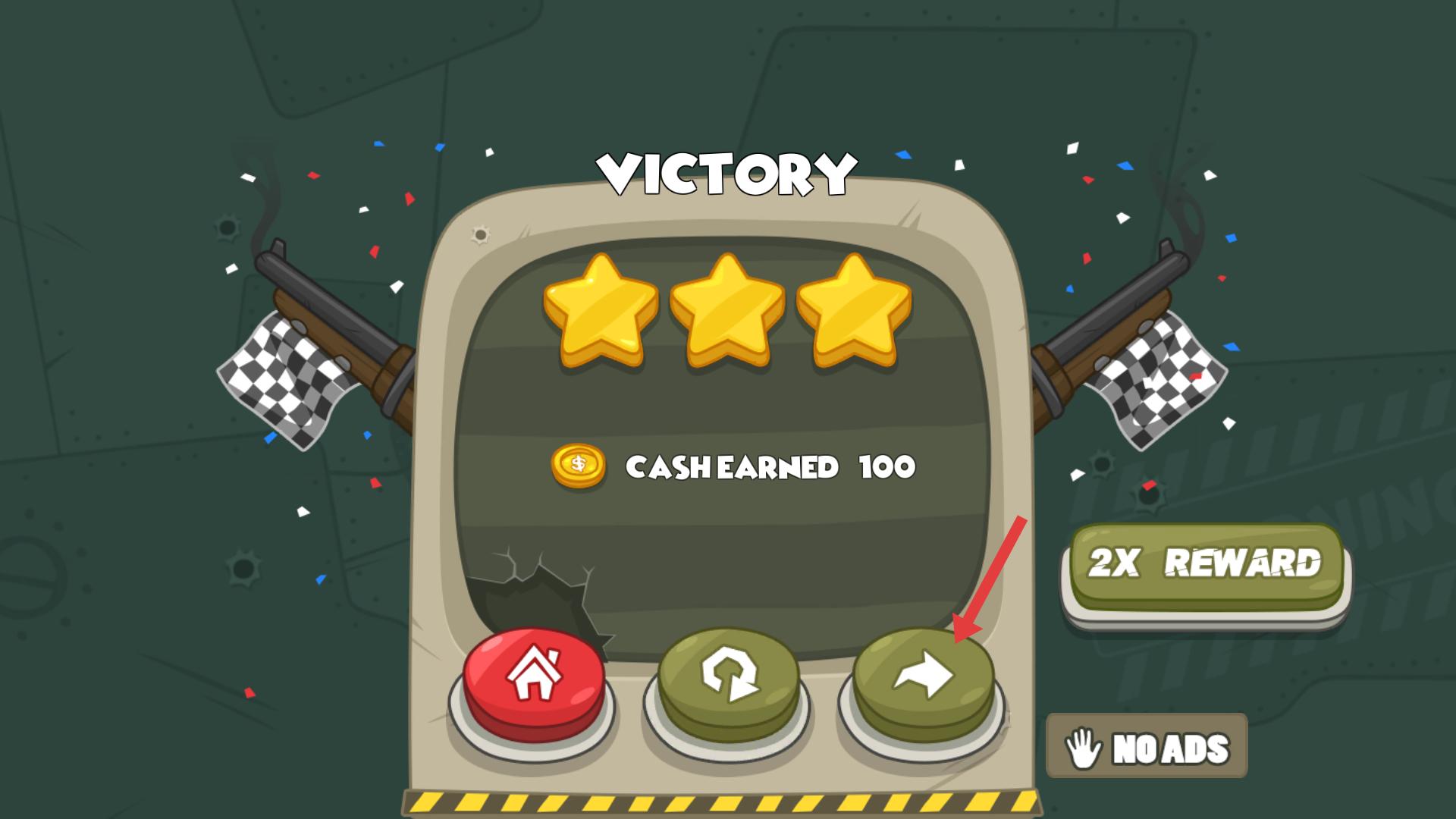 3、成功完成任務(wù)后,會顯示勝利界面,獲得100現(xiàn)金獎(jiǎng)勵(lì),點(diǎn)擊右側(cè)箭頭按鈕,可進(jìn)入下一個(gè)狙擊任務(wù)。