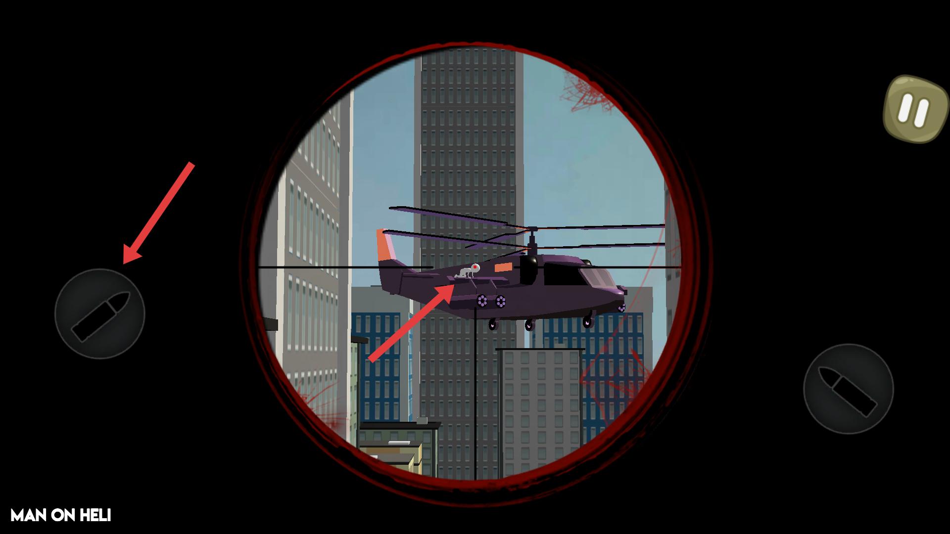 4、在后續(xù)任務(wù),瞄準(zhǔn)直升機(jī)上的目標(biāo),點(diǎn)擊左側(cè)子彈按鈕發(fā)射子彈,精準(zhǔn)射擊直升機(jī)上的人物,完成任務(wù)。