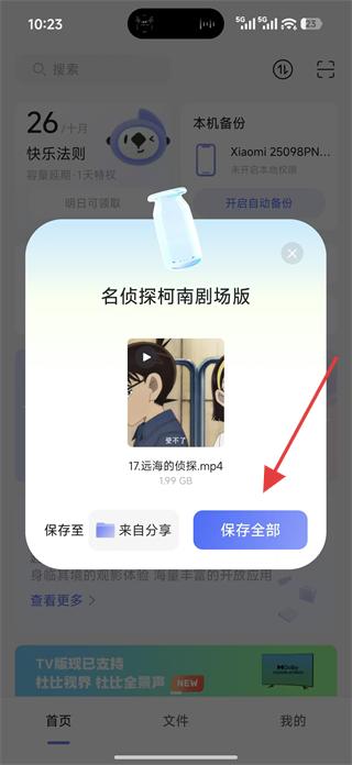 4、在彈出的名偵探柯南劇場版文件保存窗口中點擊保存全部,將文件保存至來自分享中。