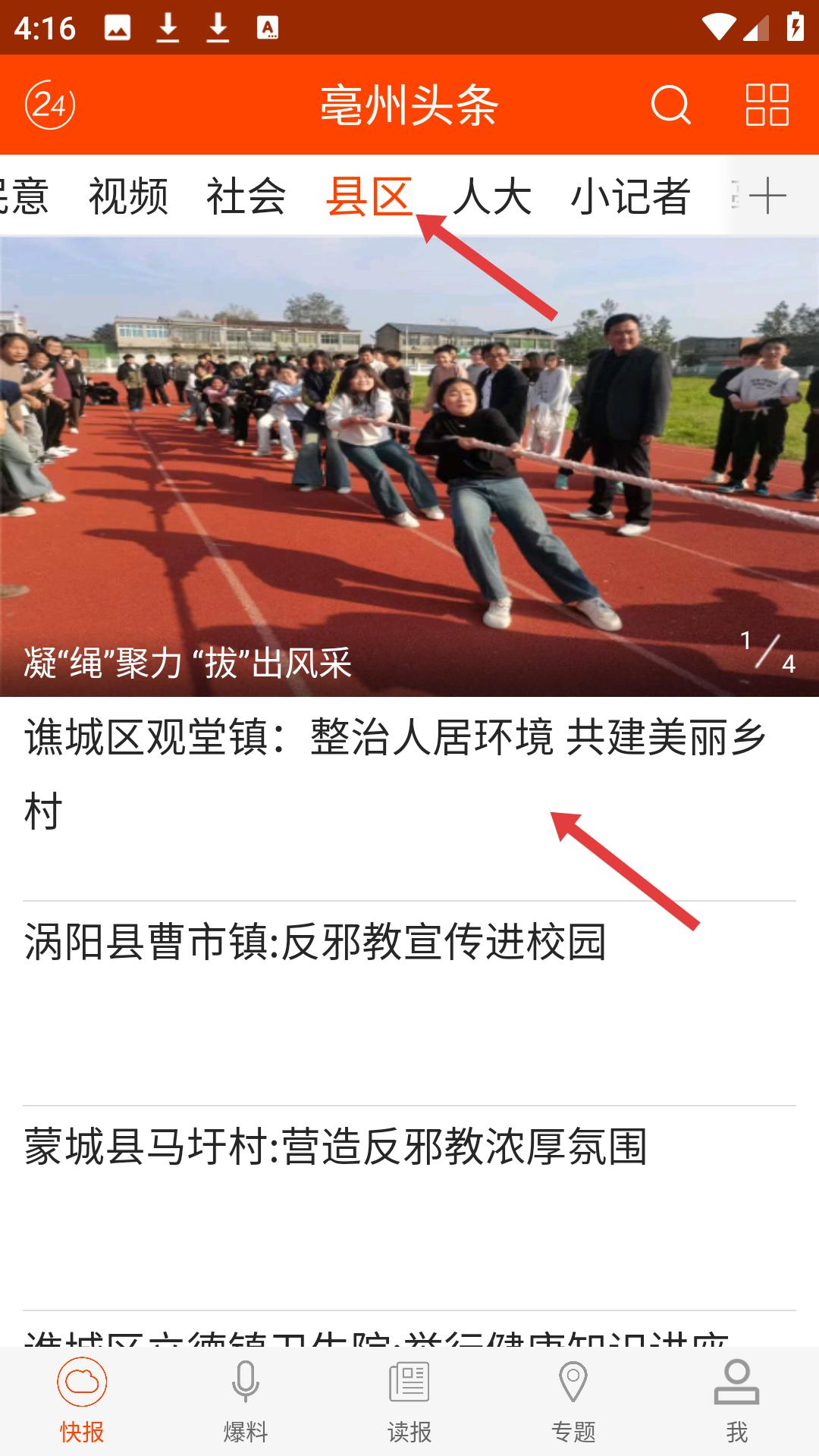 3、進入縣區(qū)頁面,瀏覽縣區(qū)新聞,選擇感興趣的新聞,點擊查看,了解新聞內(nèi)容。