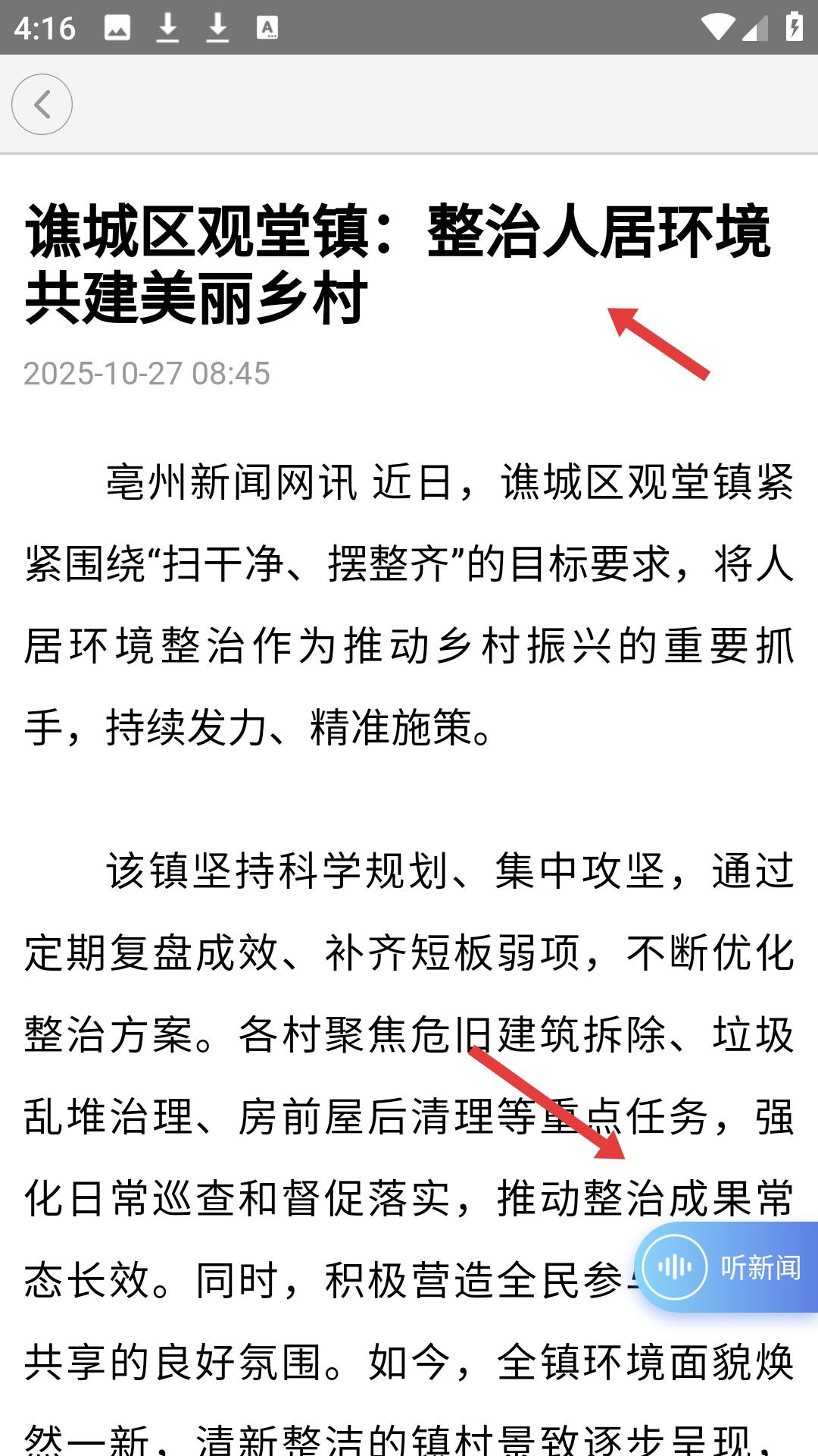 4、在新聞詳情頁,可閱讀新聞內(nèi)容,點擊聽新聞,收聽新聞,了解新聞詳細信息。