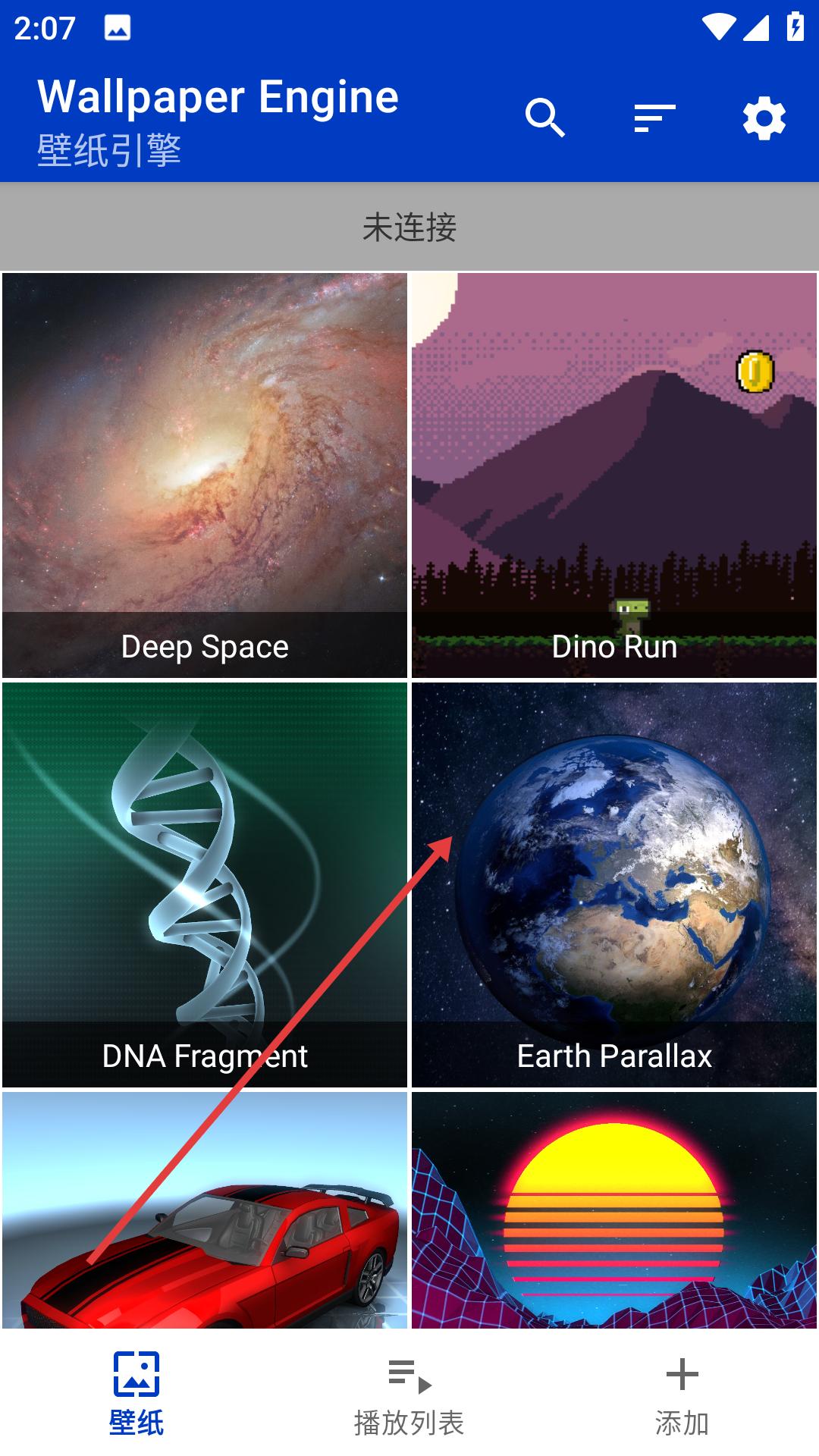 1、在應用的壁紙頁面,有多種風格的壁紙可供選擇,點擊下方播放列表按鈕,即可進入播放列表頁面。