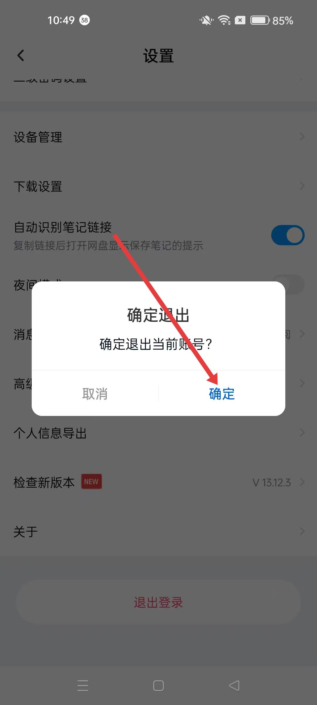 4、最后來到確認(rèn)彈窗中,點(diǎn)擊確定按鈕,即可完成網(wǎng)盤的退出登錄操作。