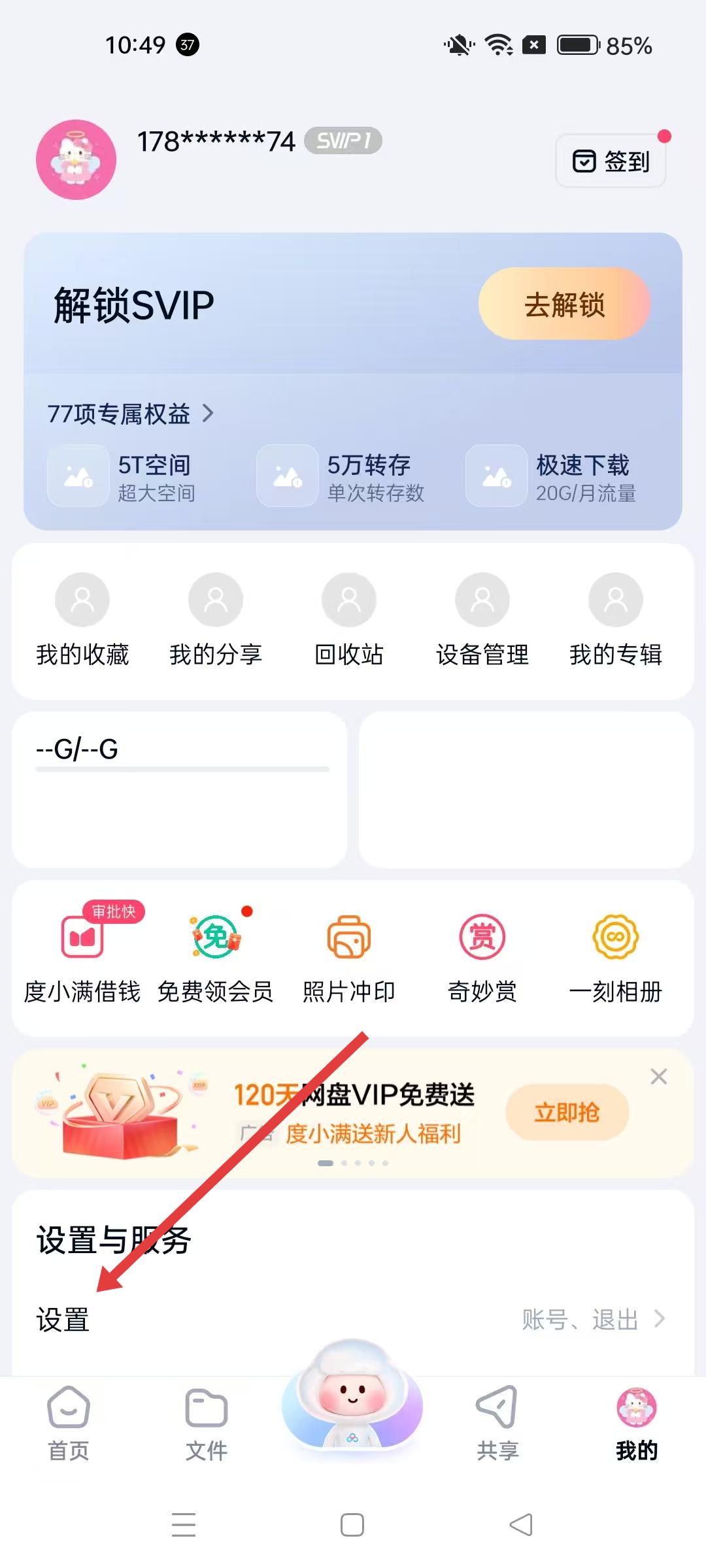1、打開網(wǎng)盤后,點(diǎn)擊右下角我的圖標(biāo),進(jìn)入個(gè)人頁面,開啟后續(xù)退出登錄操作。