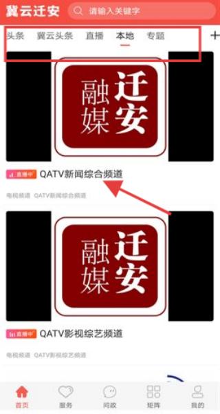 3、在冀云遷安界面,通過頭條直播等欄目,選擇QATV新聞綜合頻道等,觀看本地電視節(jié)目和直播內(nèi)容。