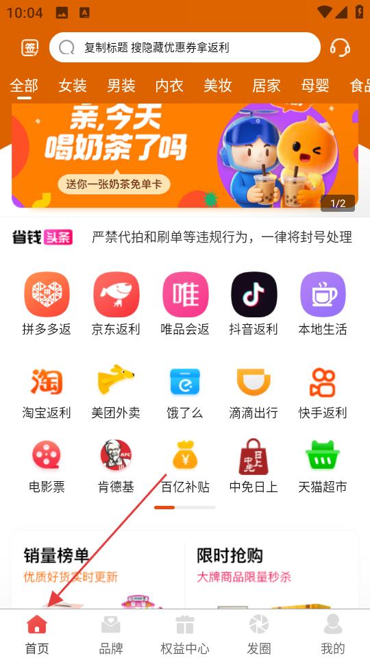 1、打開推客聯(lián)盟,進入首頁瀏覽各類返利入口與功能模塊,找到銷量榜單區(qū)域,點擊進入查看優(yōu)質(zhì)好貨,挑選感興趣商品。