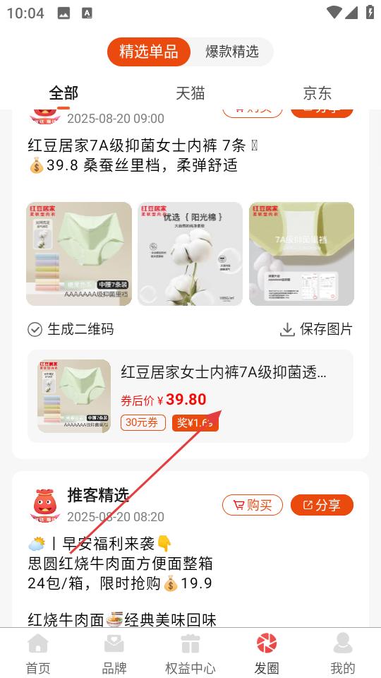 2、在商品列表,找到紅豆居家女士內(nèi)褲商品,點擊進入商品詳情頁,查看券后價格、優(yōu)惠信息及商品介紹。