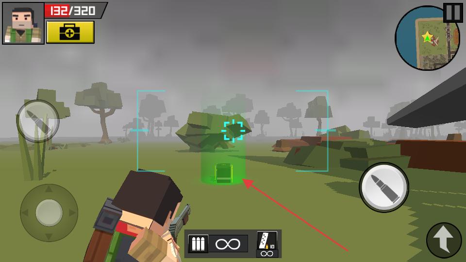 4、在攻擊敵人過程中留意角色的血量,若血量減少,尋找綠色補給箱,靠近補給箱獲取資源,恢復血量,增強生存能力。