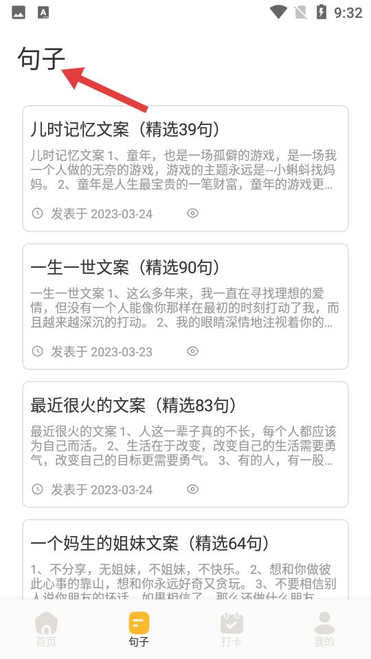 2、點擊句子頁面精心收錄兒時記憶、姐妹等主題文案,如童年感悟、情感話語,為文字愛好者提供靈感素材。