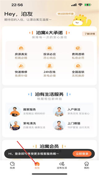 2、在住板塊有泊寓6大承諾,如房源真實(shí)、投訴必應(yīng)等,還有搬家、入戶保潔等生活服務(wù),保障租客居住體驗(yàn)服務(wù)貼心。