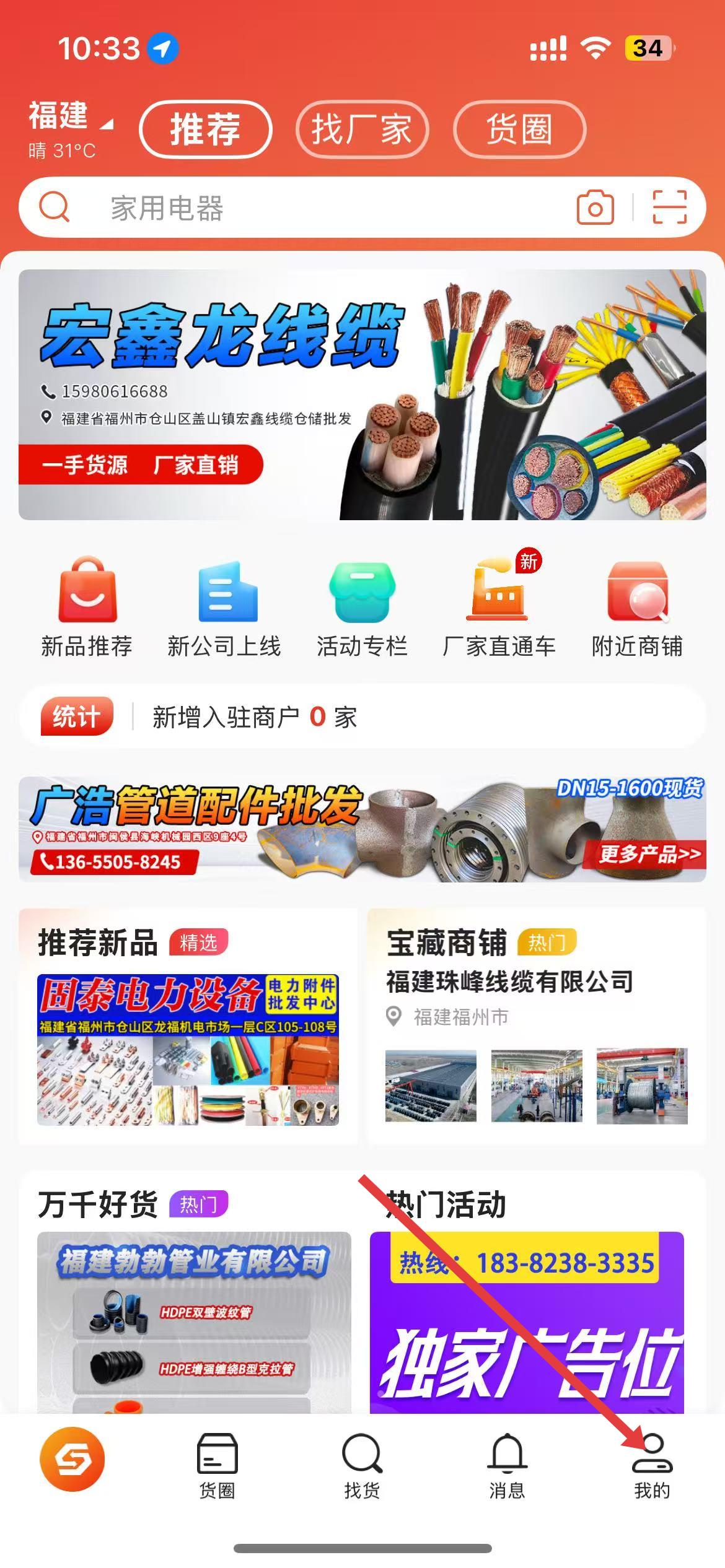 3、登錄后進(jìn)入首頁(yè),可瀏覽推薦,找廠家等,點(diǎn)擊底部我的,可進(jìn)入個(gè)人中心,管理賬號(hào),查看訂單等,開(kāi)展后續(xù)使用。