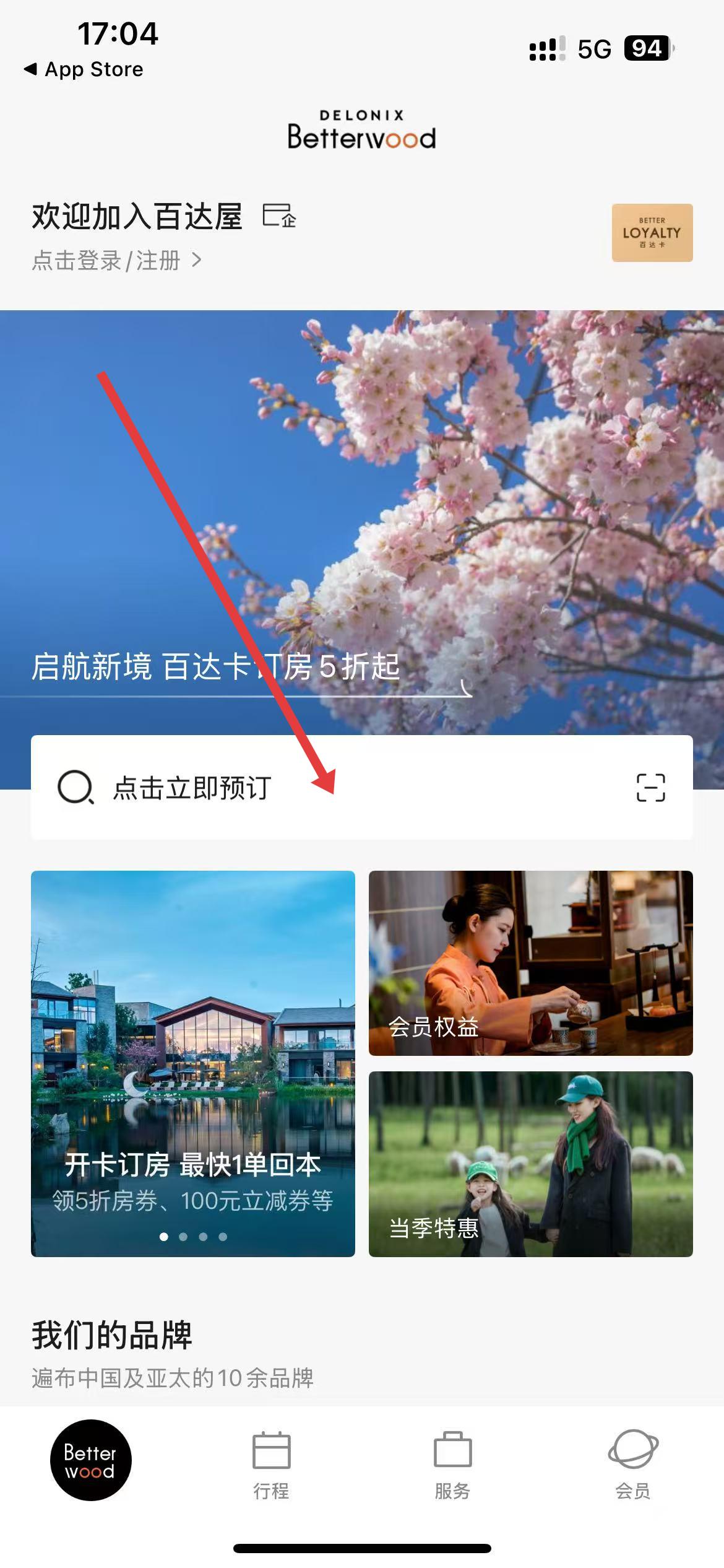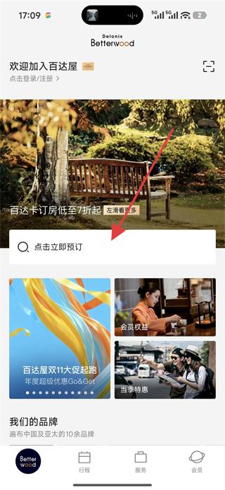 1、進入軟件的主頁面,跟隨箭頭的指示,將視線移動到屏幕中心,點擊立即預訂進入下一步。