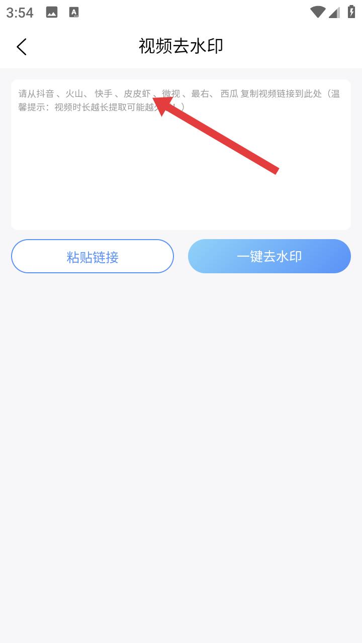 3、視頻去水印功能,支持抖音、火山等多平臺(tái)視頻鏈接,用戶復(fù)制鏈接粘貼后點(diǎn)擊一鍵去水印,即可快速處理,方便提取無水印素材。