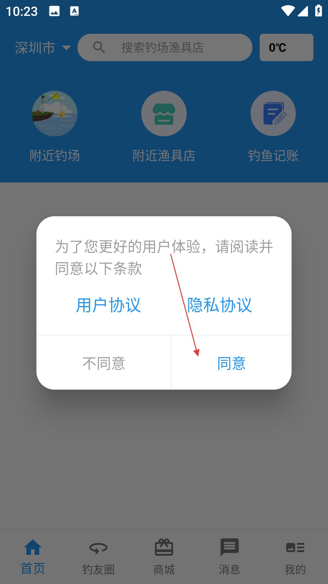 1、下載安裝完成后進入,需在用戶協(xié)議和隱私政策界面點擊同意,接受相關(guān)條款后才能進入應(yīng)用。