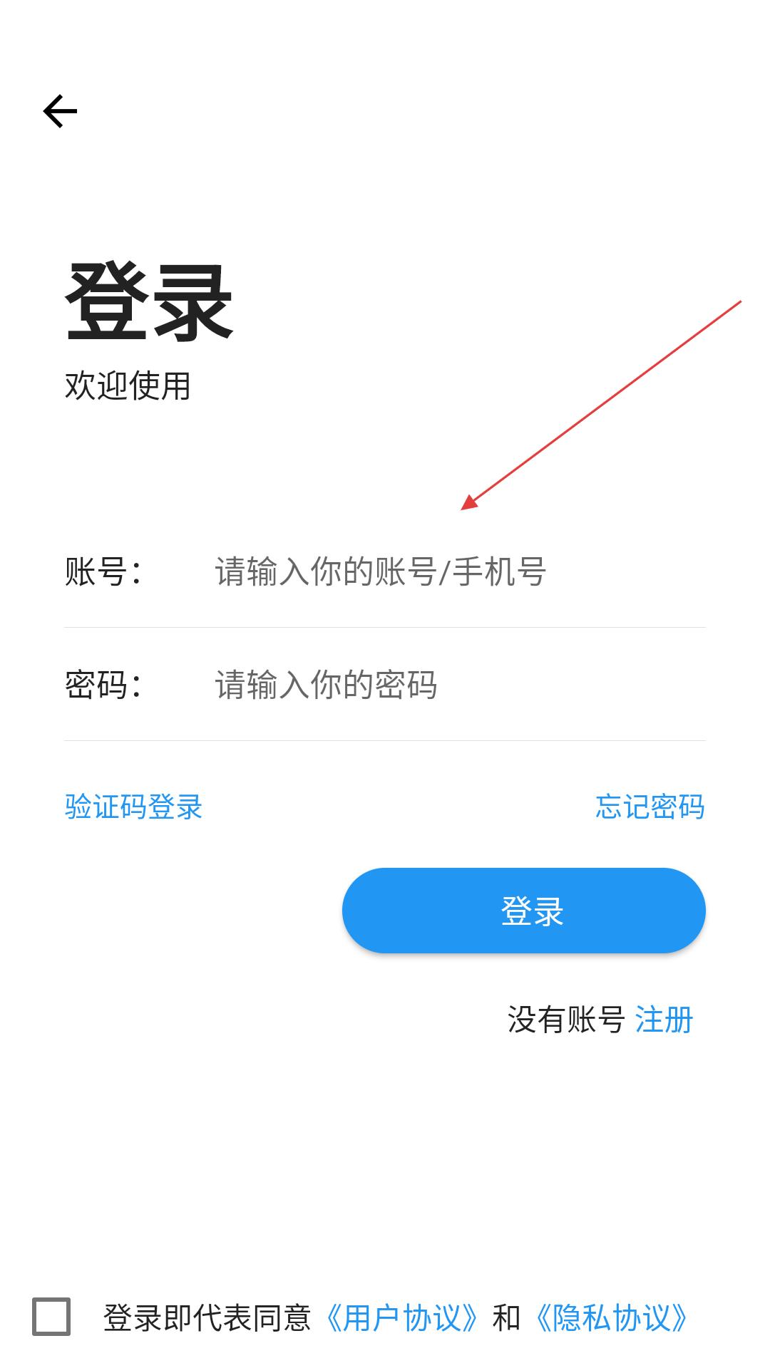 2、登錄界面,用戶可輸入賬號、手機號和密碼登錄,也可選擇驗證碼登錄或忘記密碼找回密碼。