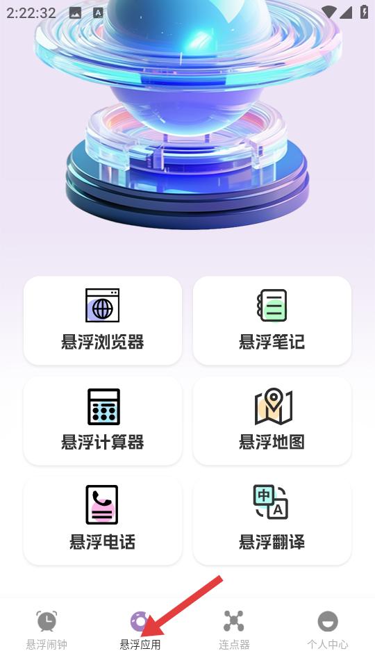3、切換到懸浮應(yīng)用頁面可選擇懸浮瀏覽器、懸浮筆記等工具,這些應(yīng)用能懸浮于手機界面,支持多任務(wù)并行操作,拓展懸浮鬧鐘外的實用功能。