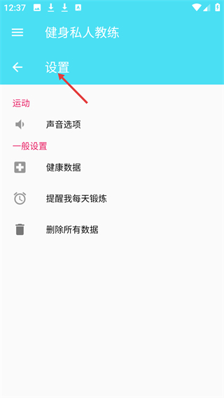 4、設置頁可調(diào)聲音、管健康數(shù)據(jù)、設鍛煉提醒,也可刪所有數(shù)據(jù),方便個性化配置APP。