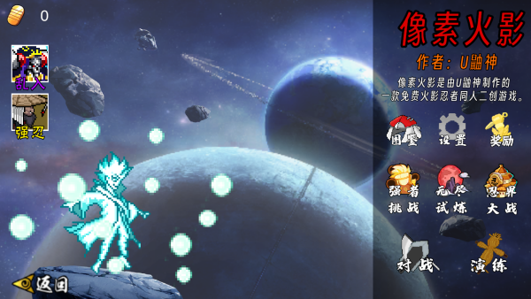 1、完美采用像素圖形還原了各個(gè)忍者的格斗特技,更是有著原版的聲優(yōu)配音,格斗的時(shí)候熱血感十足。
