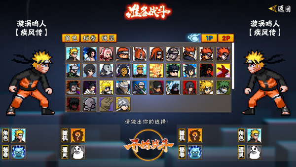 2、經(jīng)典復(fù)古的像素風(fēng)圖形打造的各種帥氣忍者,可以操控這些忍者來(lái)同其它動(dòng)漫之中的角色進(jìn)行格斗。