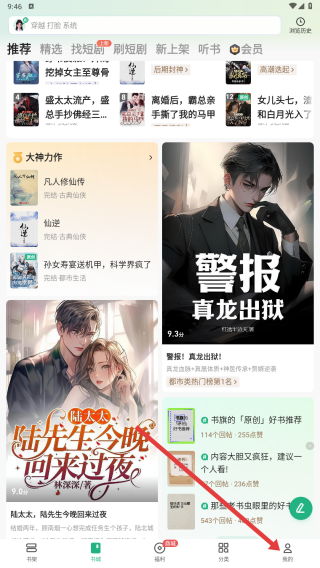 1、書城頁面,展示推薦榜等榜單,阿姨,我真不想上班了在推薦榜排名靠前,用戶可瀏覽和選擇感興趣的小說,在書架、書城等頁面間切換。