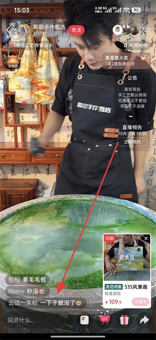 1、進(jìn)入聰聰手作甄選直播間,查看直播商品如535風(fēng)景畫等,了解商品價格與介紹,等待專屬優(yōu)惠彈窗出現(xiàn),準(zhǔn)備領(lǐng)取優(yōu)惠。