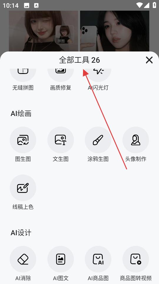 2、點擊查看全部,進入全部工具頁面,查看AI繪畫、AI設計等分類下的工具,了解多樣創(chuàng)作功能。