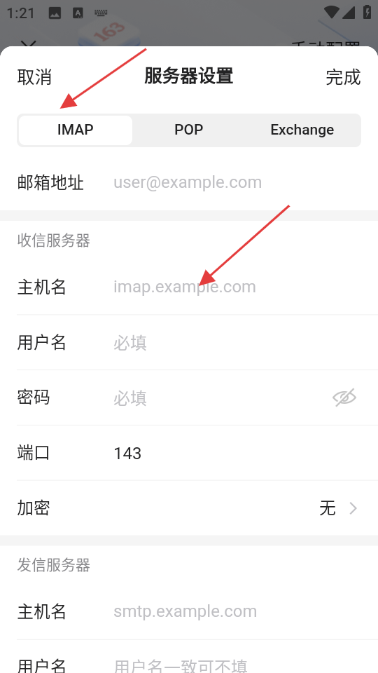 2、服務(wù)器設(shè)置界面,用戶可輸入郵箱地址、收信服務(wù)器主機(jī)名等信息,方便用戶配置IMAP郵件服務(wù)器。